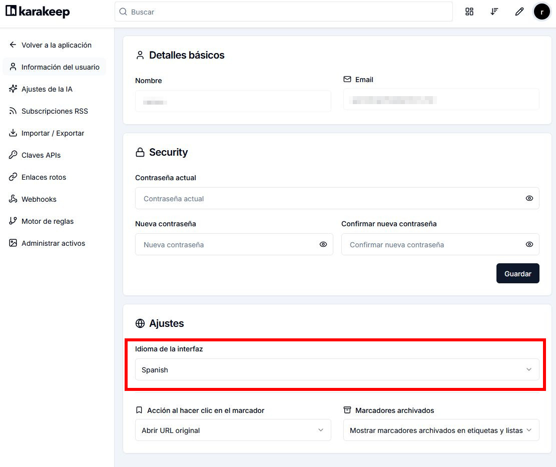 docker run -d --restart unless-stopped --name karakeep_web -p 3000:3000 -v /share/DockerData/karakeep:/data --env-file /share/DockerData/karakeep/.env -e "MEILI_ADDR=http://karakeep_meilisearch:7700" -e "BROWSER_WEB_URL=http://karakeep_chrome:9222" -e "DATA_DIR=/data" -e " ghcr.io/karakeep-app/karakeep:${KARAKEEP_VERSION:-release}Los nombres de los tres dockers comienzan por "karakeep" para que en caso de gestionarlos por nombre nos salgan consecutivos.