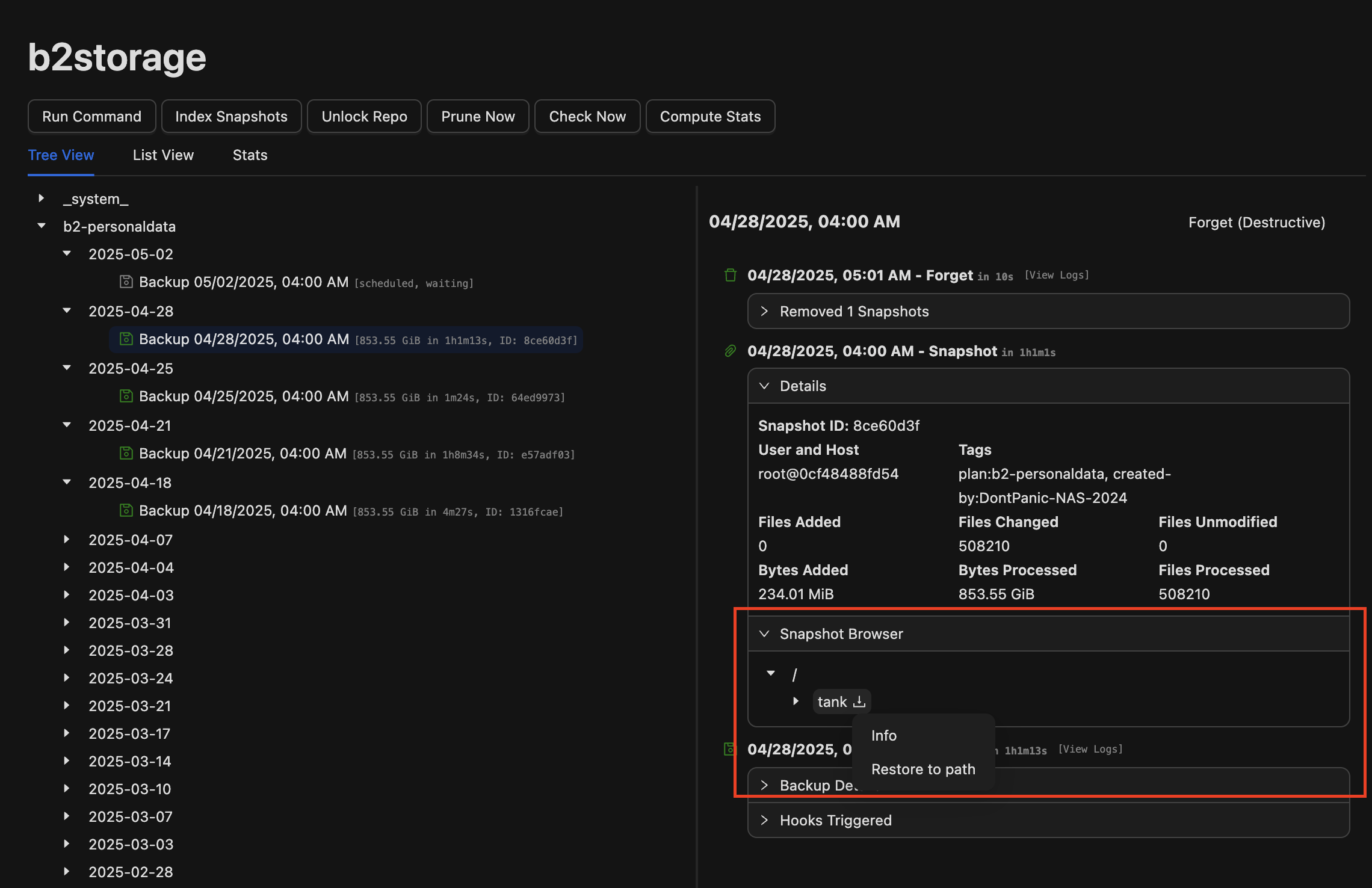 Backrest no sólo permite hacer copias de seguridad de los dockers sino que también permite su fácil restauración ( las siguientes imágenes tampoco son mias ):