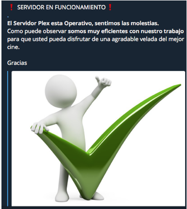 El <b>Servidor Plex esta Operativo, sentimos las molestias.</b>