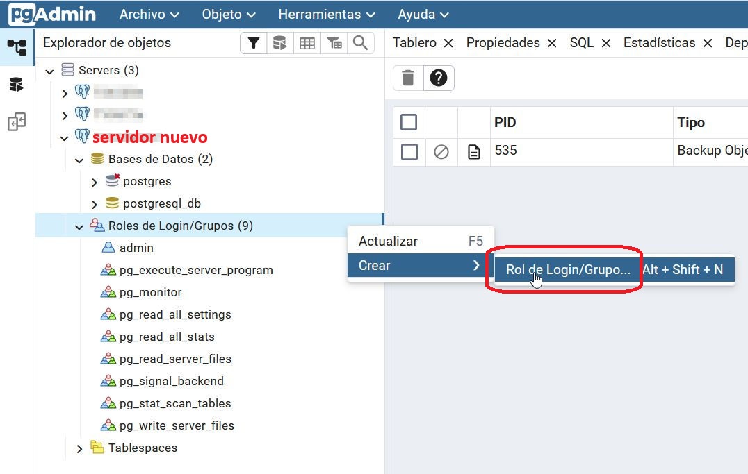 He puesto este paso ya que creo interesante que si estamos moviendo dockers y BBDD de postgresql a una nueva máquina, es que la vieja va a ser retirada en algún modo y con este paso ya tenemos un nuevo PgAdmin operativo para futuros usos.