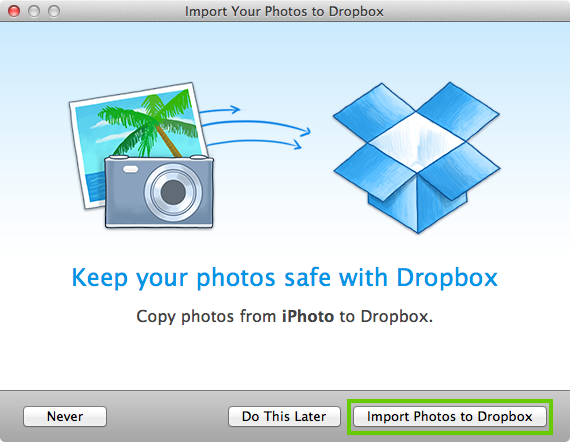Note: This feature is not available if your iPhoto library is already inside your Dropbox folder.