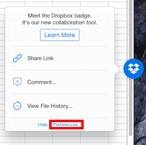 If you'd like to disable the Dropbox badge, you can do so at any time.