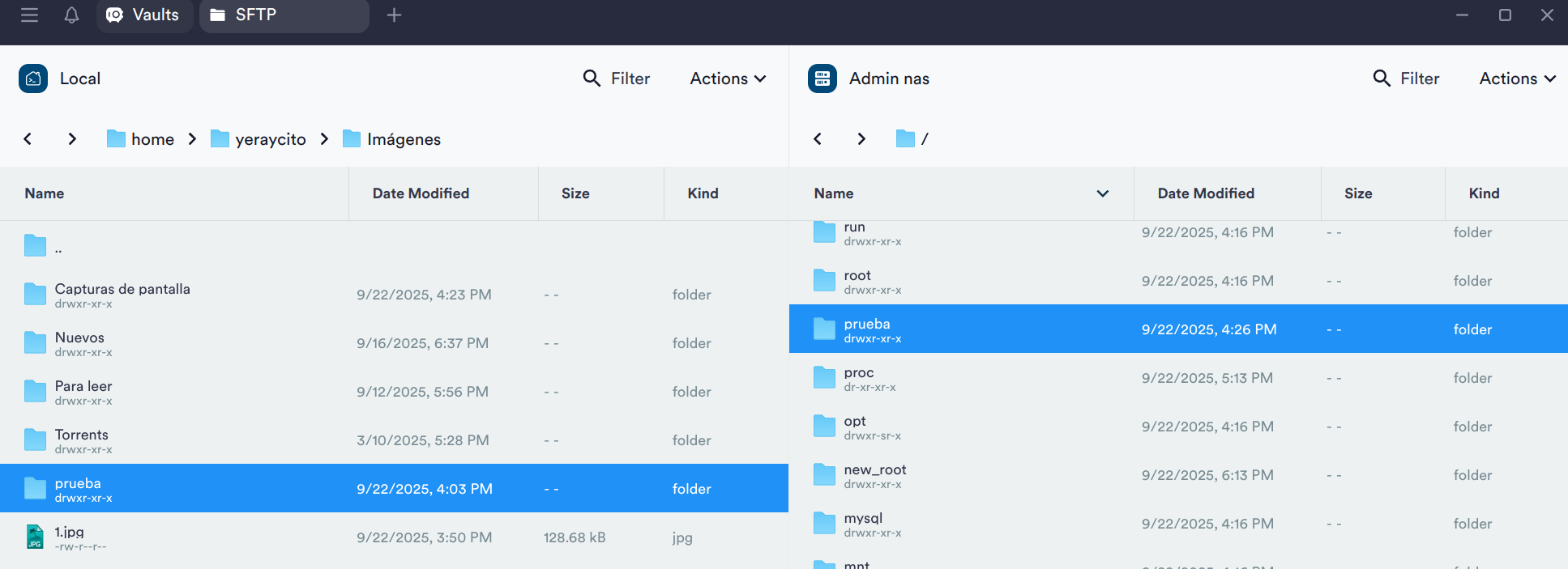 Una vez accedido paso a meterle esa carpeta de nombre prueba a mi nas.